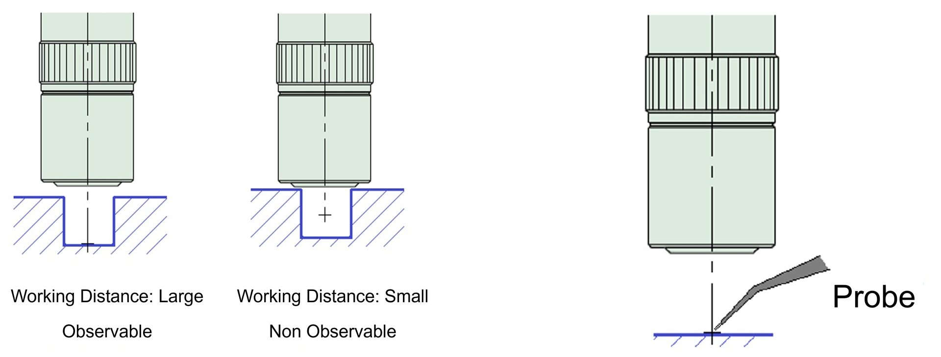 This is a critical parameter when observing with optical instruments, such as microscopes (Figure 1). - Also called W.D. (Working Distance).