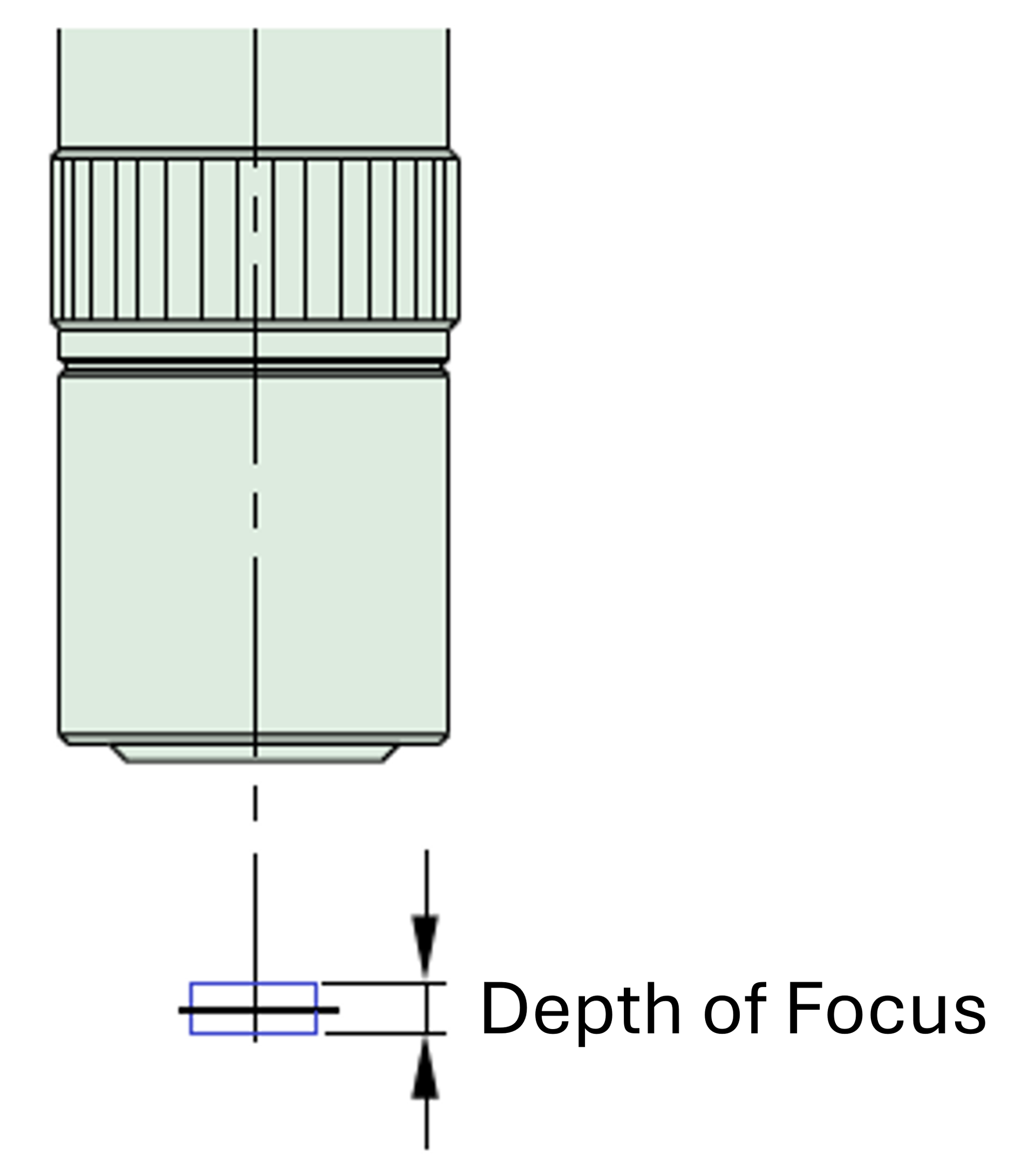 Depth of focus refers to the range within which the optics or image sensor can move while still maintaining a sharp image. Not to be confused with depth of field, which refers to the range that appears in focus without moving the sensor.(Figure 1)