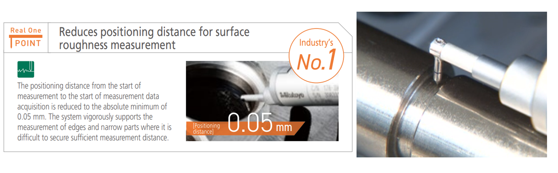 With a significantly reduced run-up distance of 0.05 mm—compared to the conventional 0.3 mm—it’s now possible to measure edge surfaces and narrow areas with precision, meeting stricter roughness management standards.