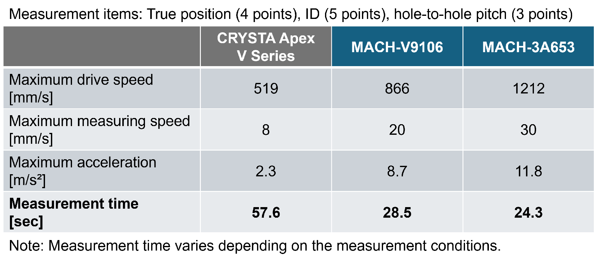 Below is an example comparing standard 3D measuring equipment to the MACH series—measurement time has been cut by about half. |
