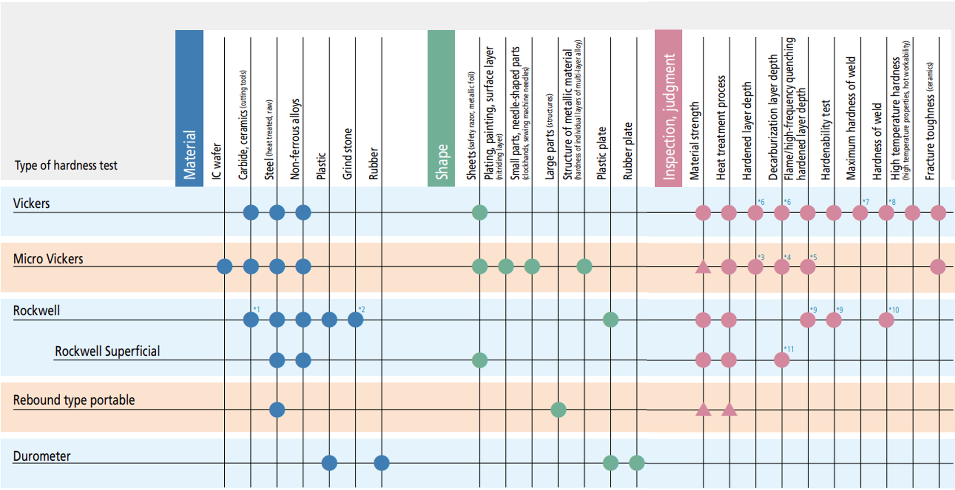 ・Choose from Rockwell (Standard & Superficial), Vickers, Brinell, Shore, and other hardness testing methods. ・Determine whether a fixed or adjustable test force setting is required.