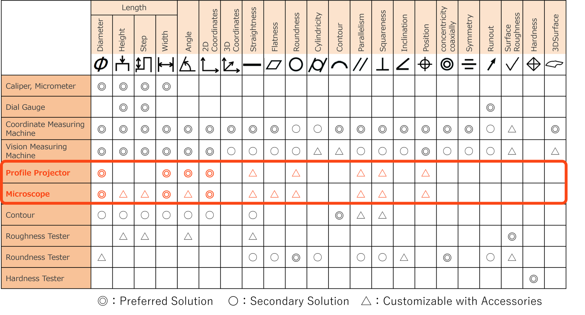 - Various dimensional measurements can be performed by combining optical observations with a cartesian.