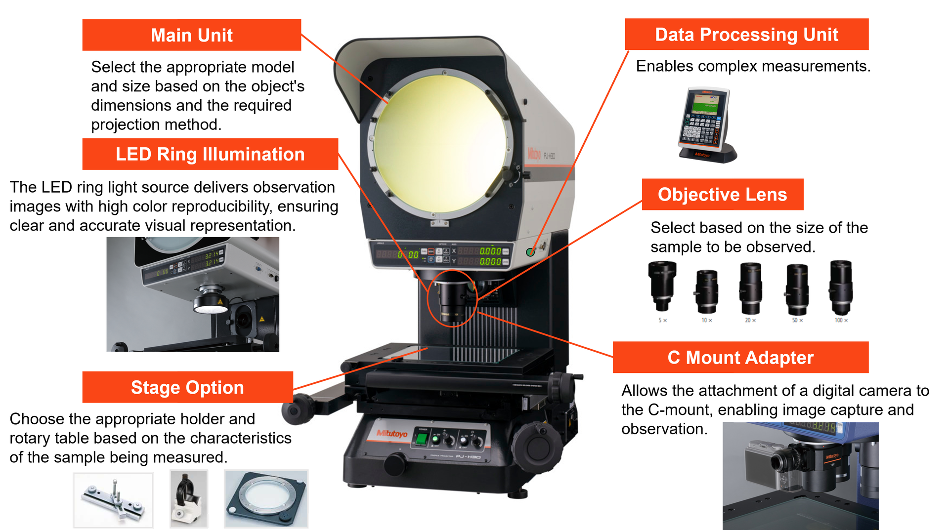 Mitutoyo profile projectors provide precise, non-contact measurement and inspection by projecting a workpiece onto a viewing screen, ideal for small or delicate parts, surface profiles, and various applications across inspection and manufacturing sites. |