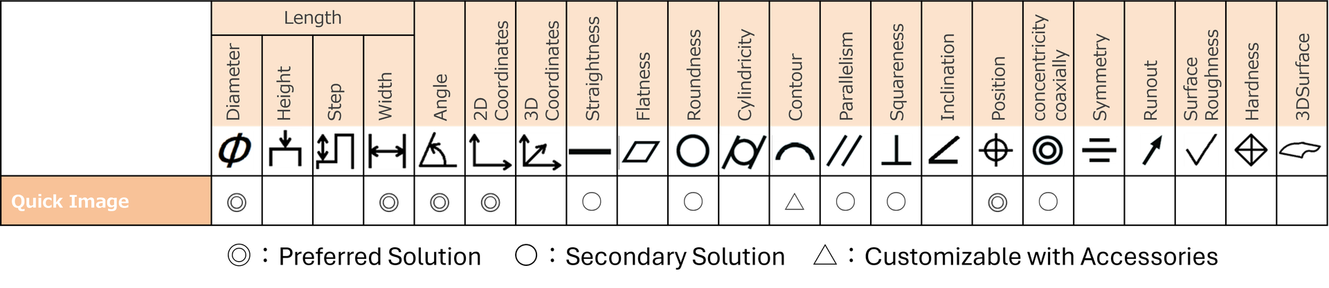 The Quick Image is a manual image measuring system designed for convenient shipping inspections. With a single click, it efficiently measures multiple workpieces on the screen using advanced pattern-searching capabilities.