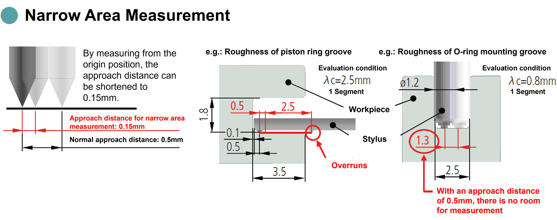 Mitutoyo's compact surface roughness measuring machine offers a variety of stylus shapes, enabling it to handle special shapes at a low cost. Additionally, its reduced run-up distance of just 0.15 mm allows for precise measurements in narrow and intricate areas, making it an ideal choice for detailed measurement requirements.