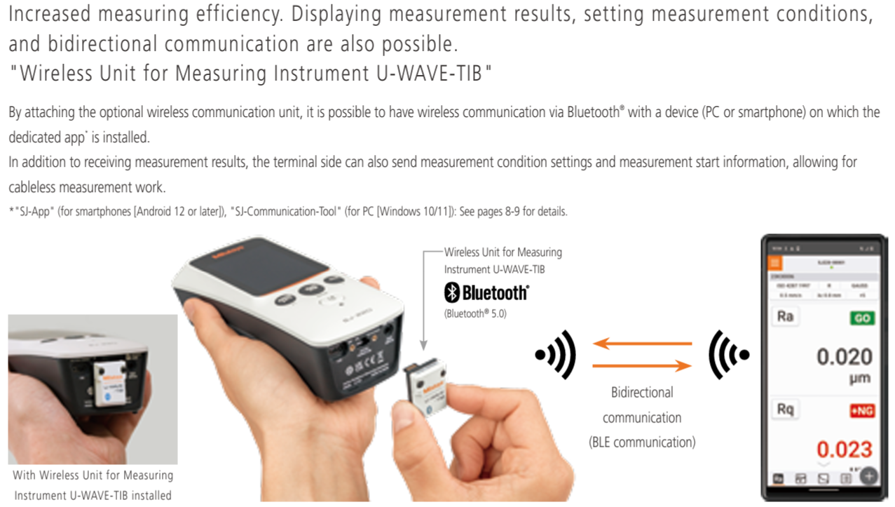 The Surftest series, including SJ-210, SJ-310, SJ-411, SJ-412, SJ-500, and SV-2100, features an easy-to-use communication function that allows measurement results to be effortlessly saved and printed as reports on A4 paper.